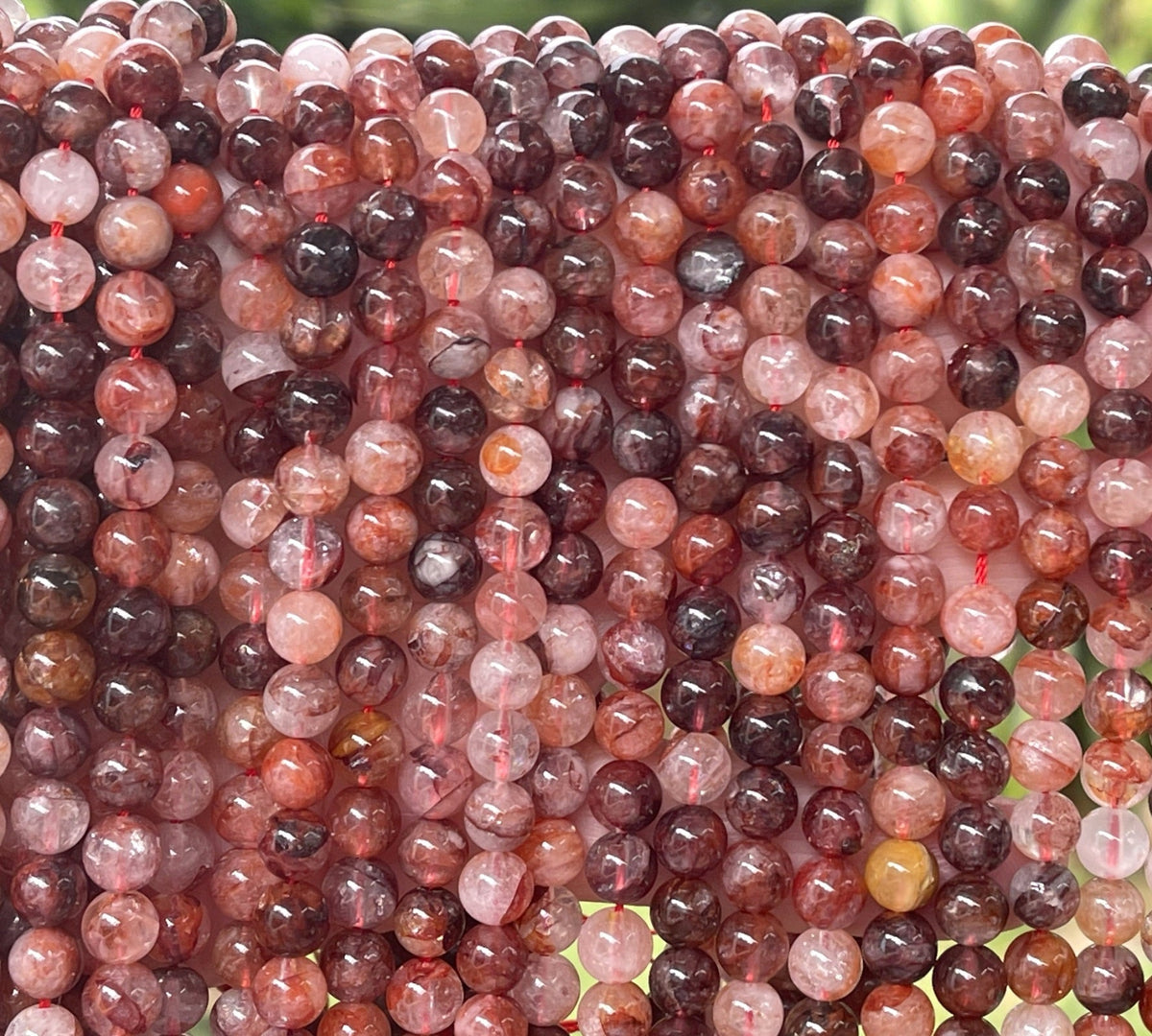 Strawberry Quartz Lepidocrocite 6mm round natural gemstone beads 15.5" strand