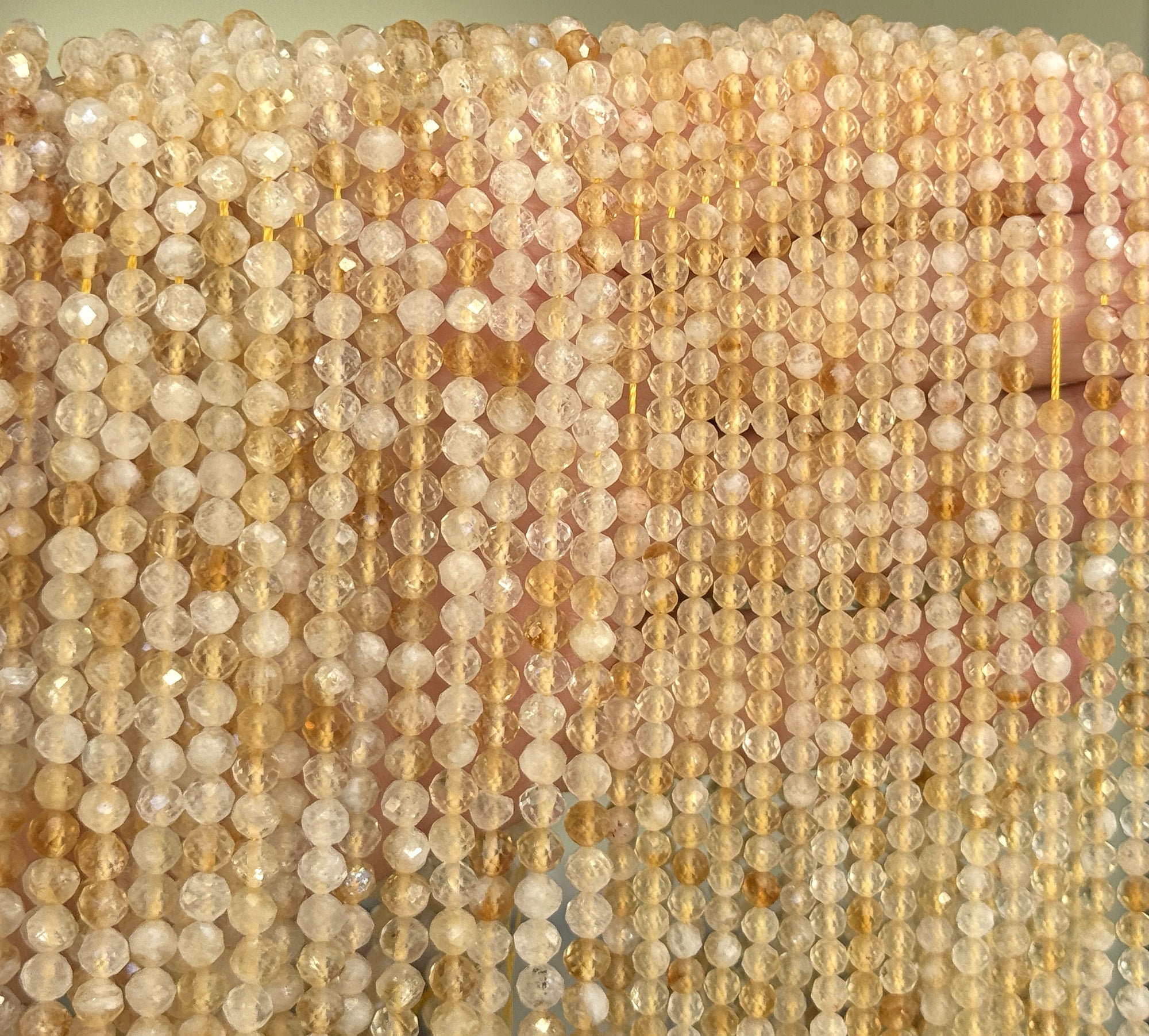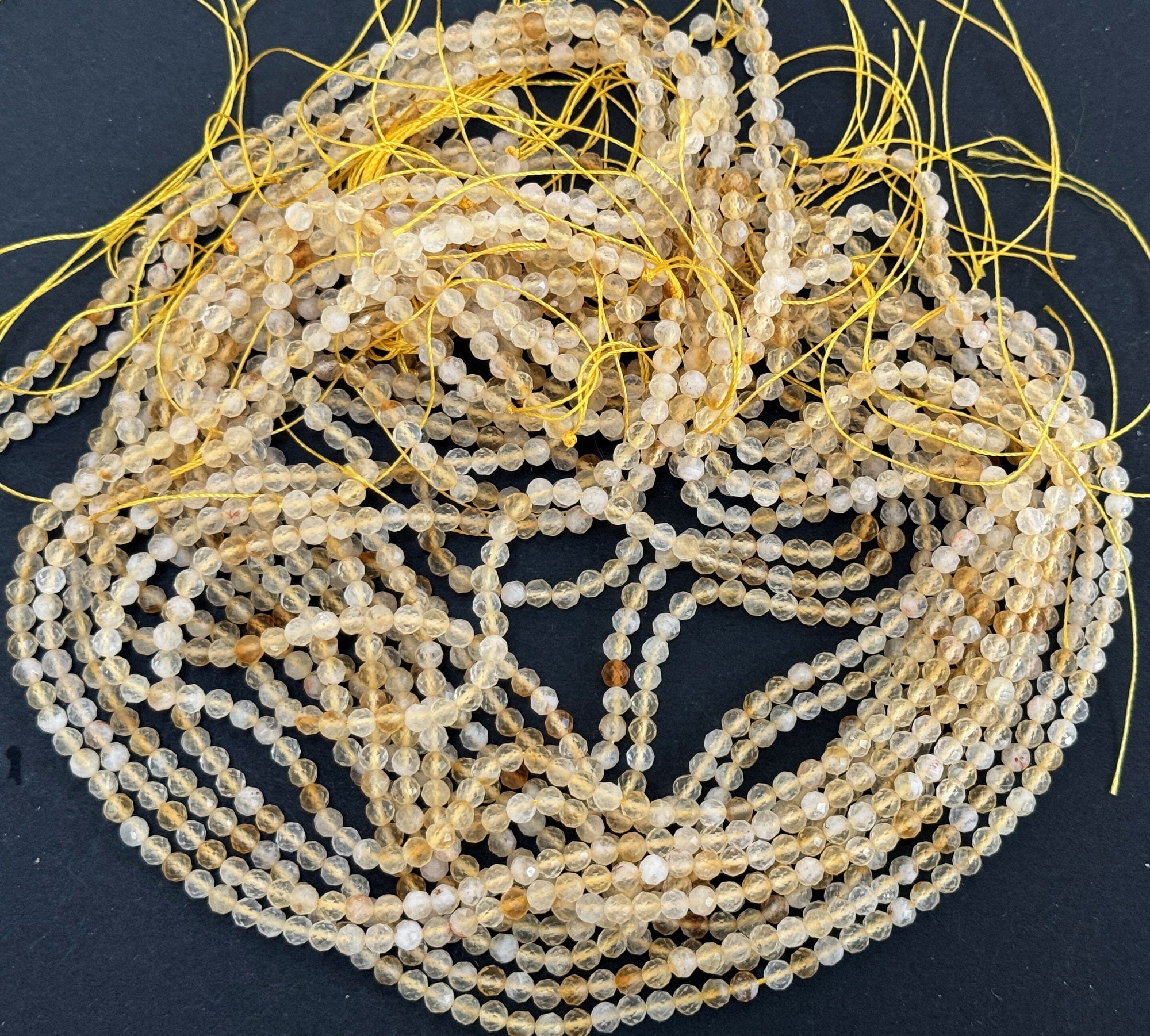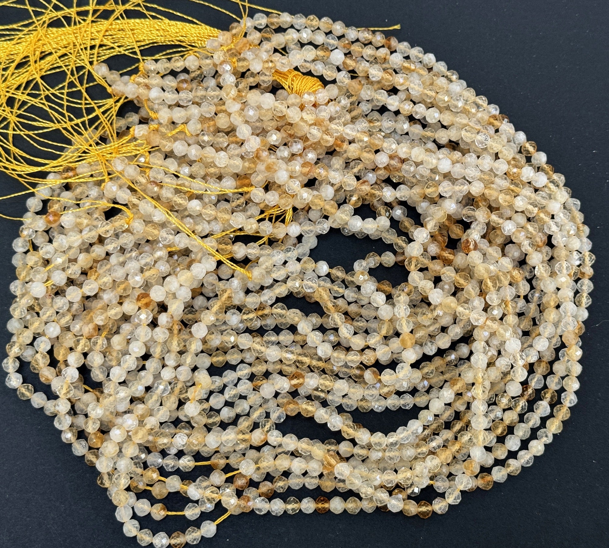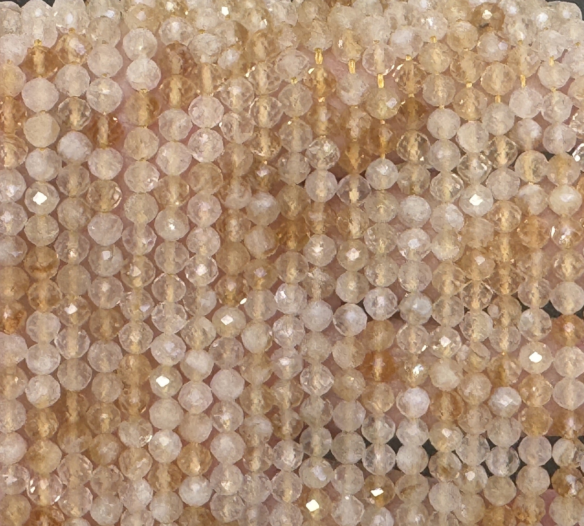 Citrine 3mm 4mm faceted round natural gemstone beads 38cm strand