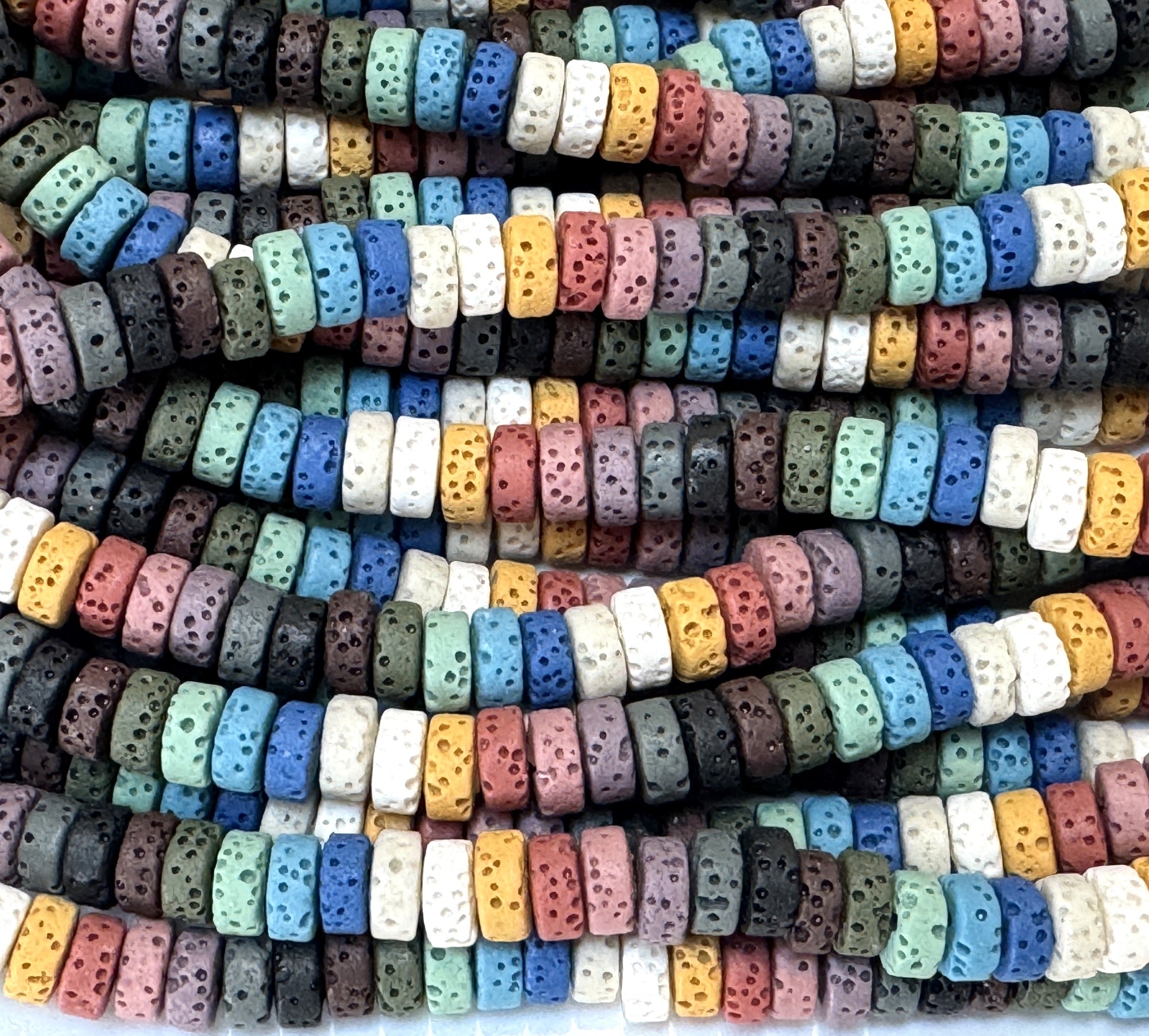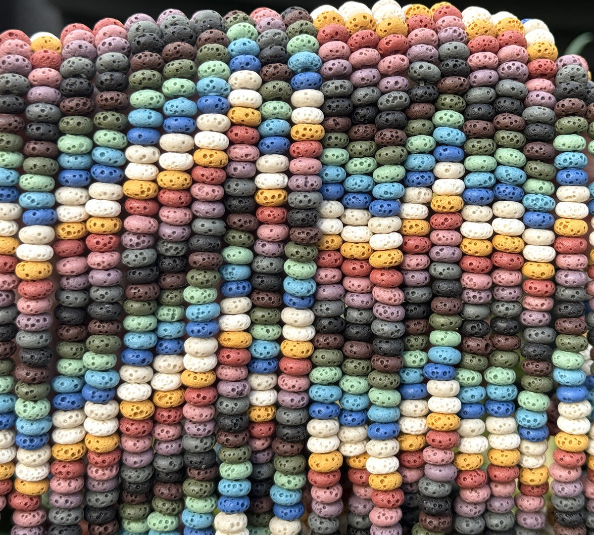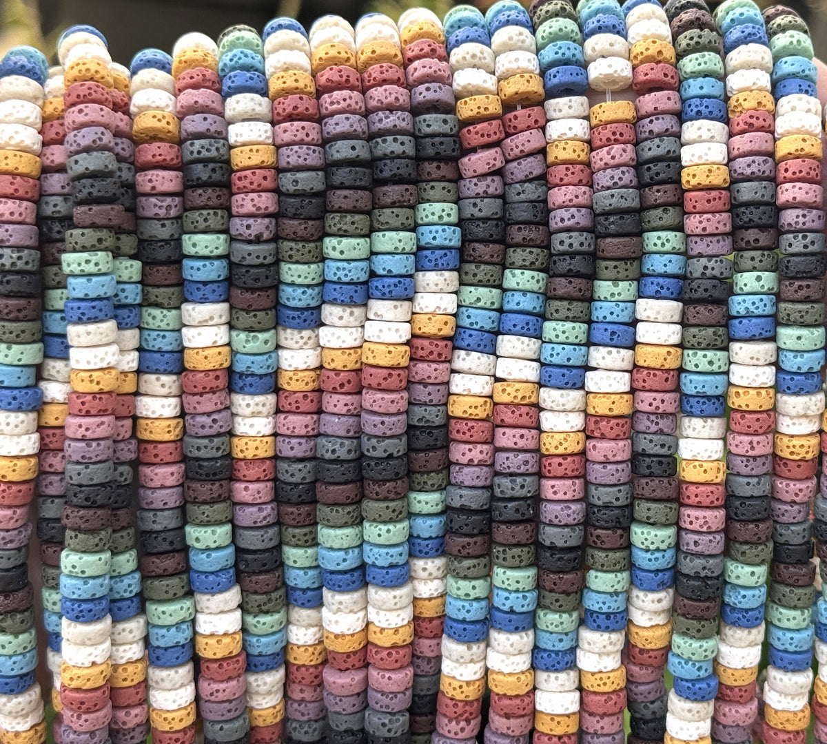 Lava Mix Color 3x6mm coin shaped volcanic diffuser beads 40cm strand
