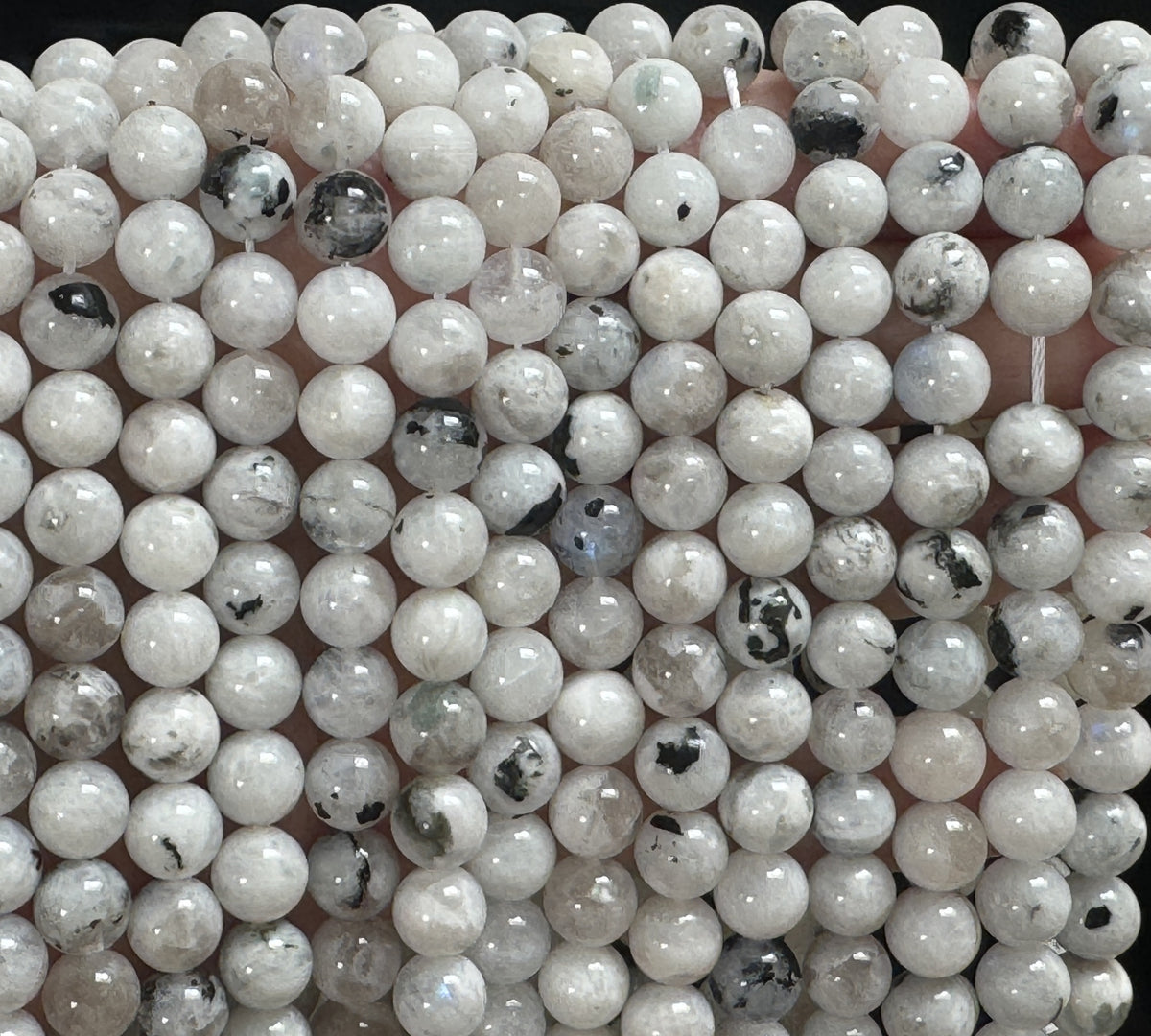 Moonstone with Black Tourmaline 8mm round natural gemstone beads 15.5" strand