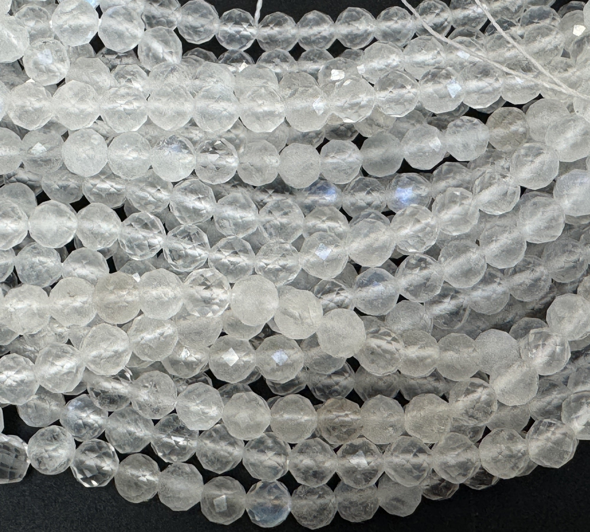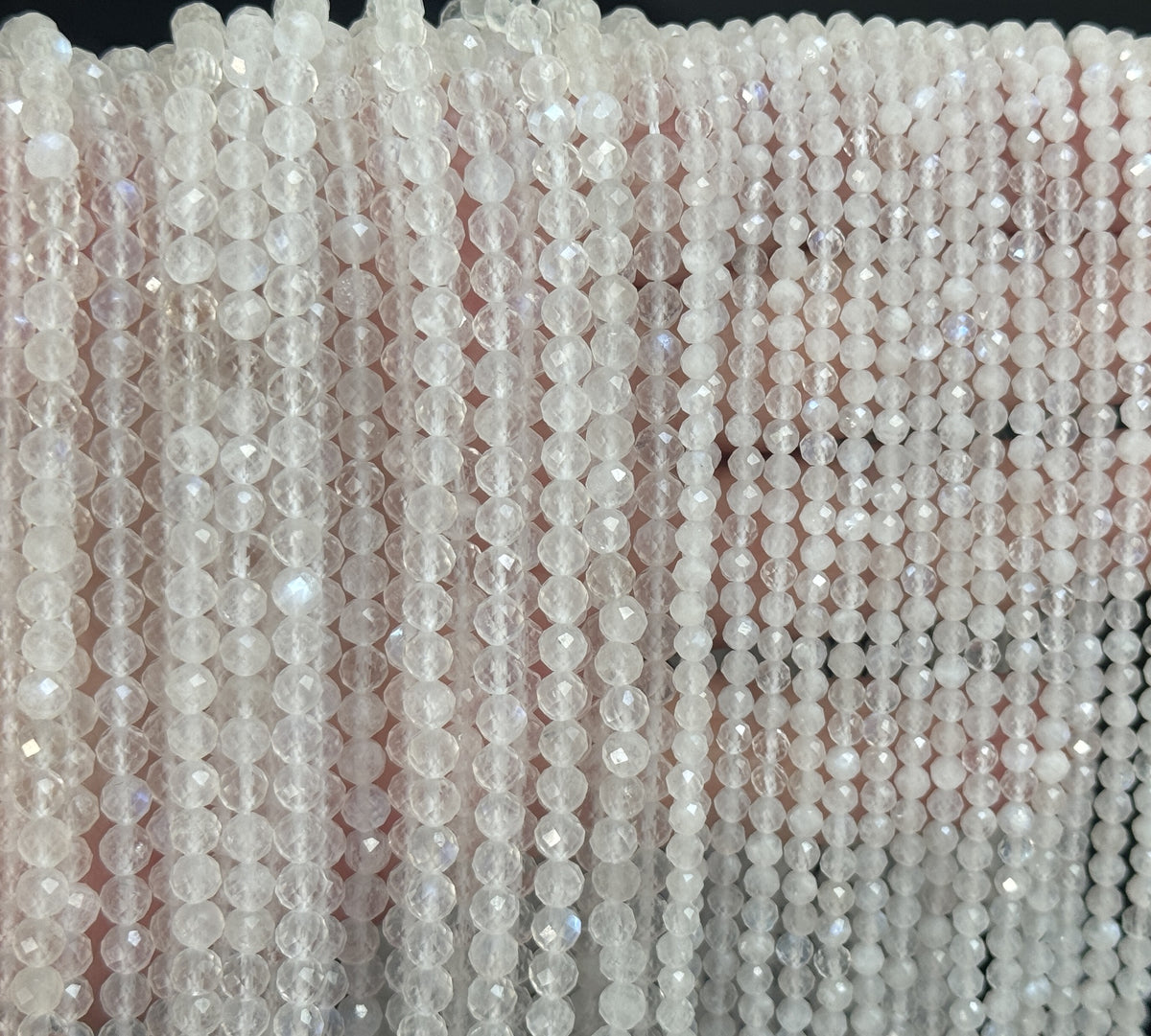 Rainbow Moonstone 3mm 4mm faceted round natural gemstone beads 15.5" strand