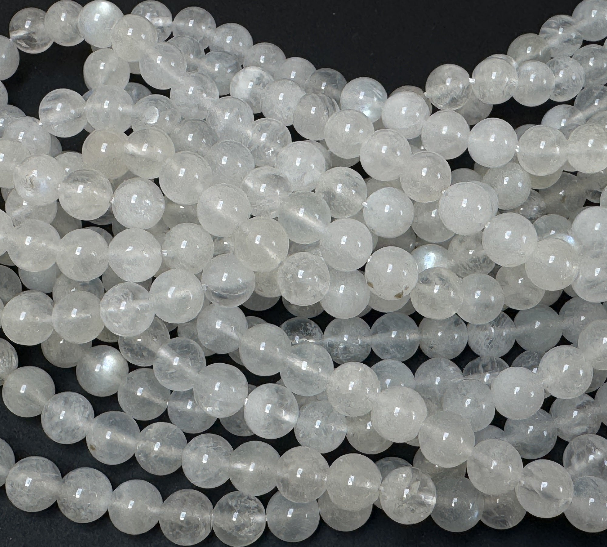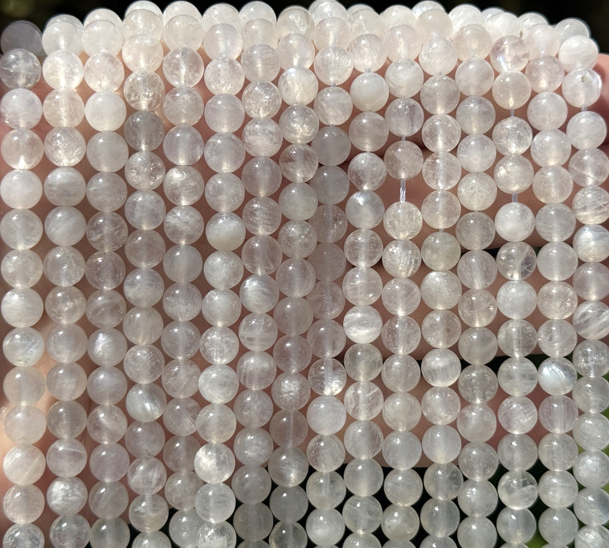 White Rainbow Moonstone 6mm round natural gemstone beads 15.5" strand