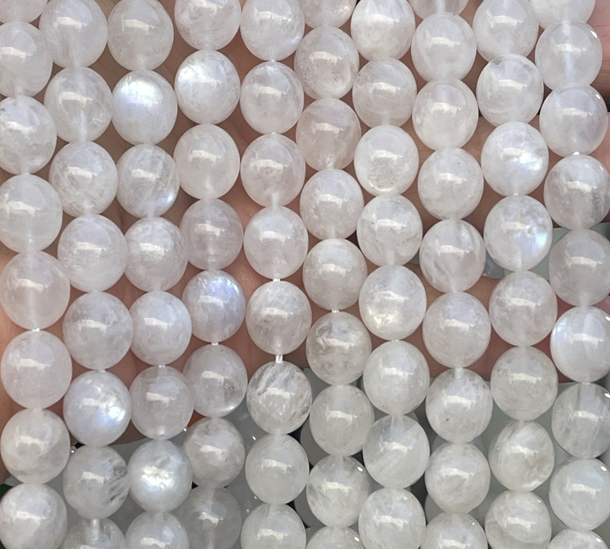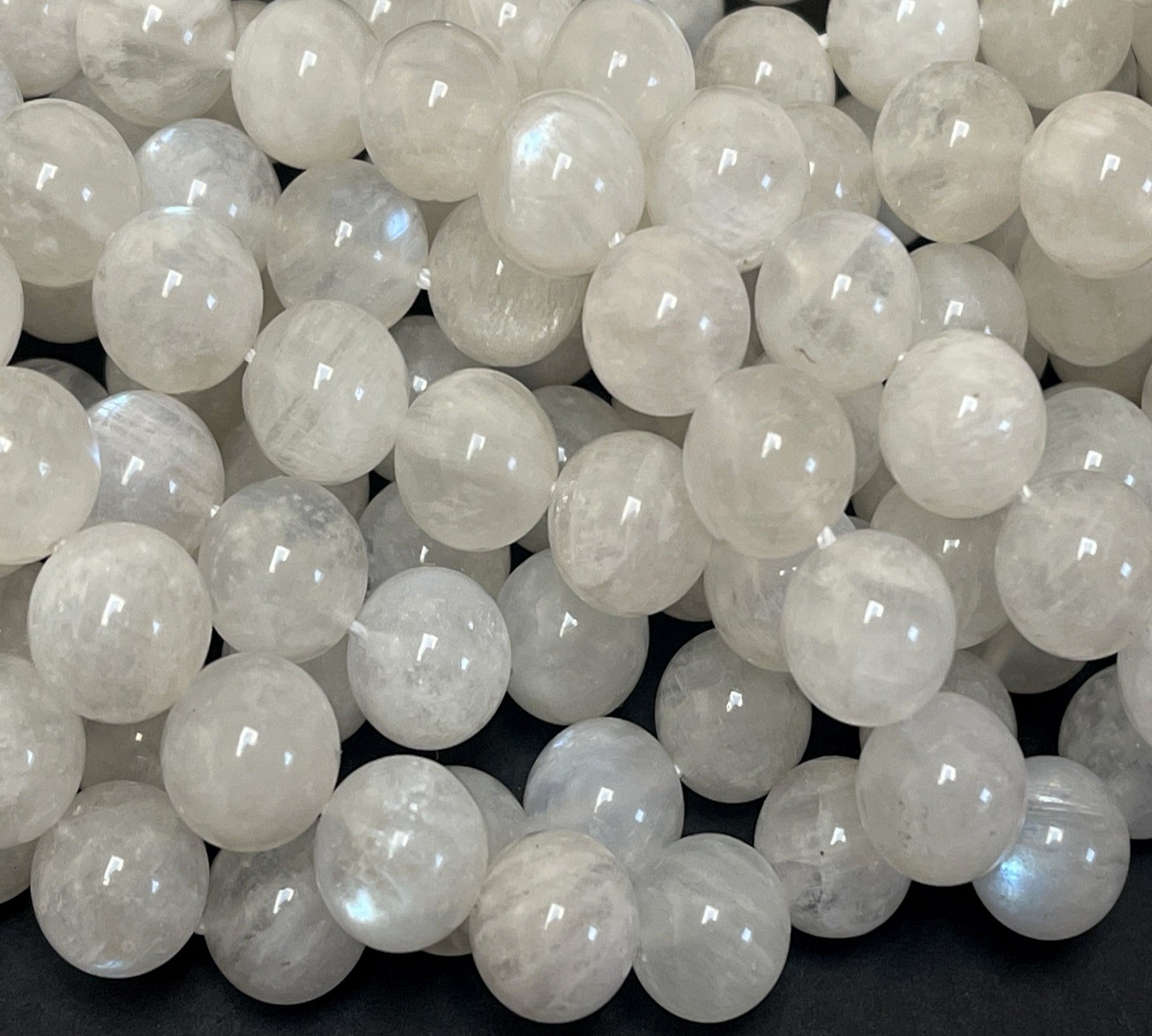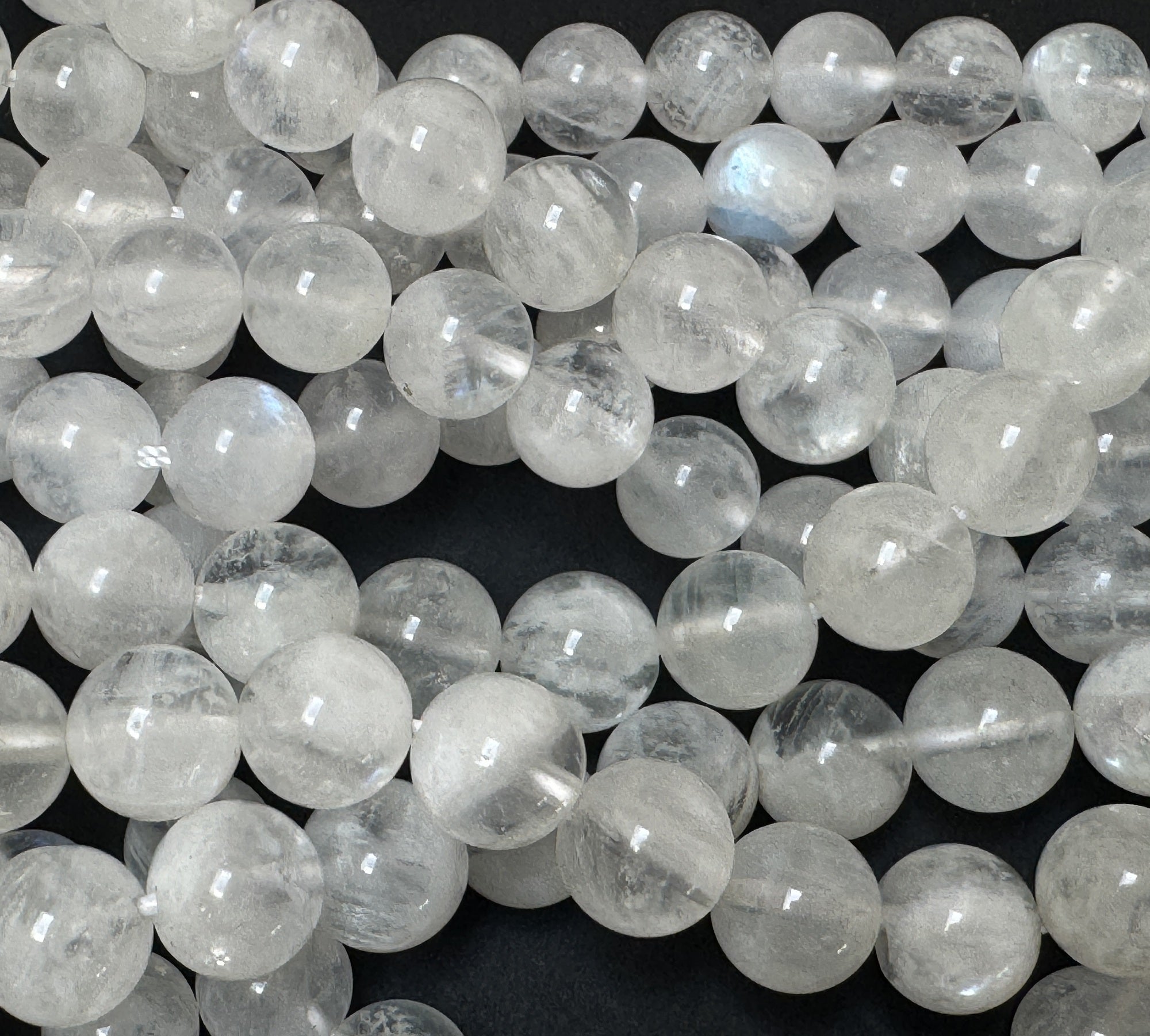 White Rainbow Moonstone 10mm round natural gemstone beads 16" strand