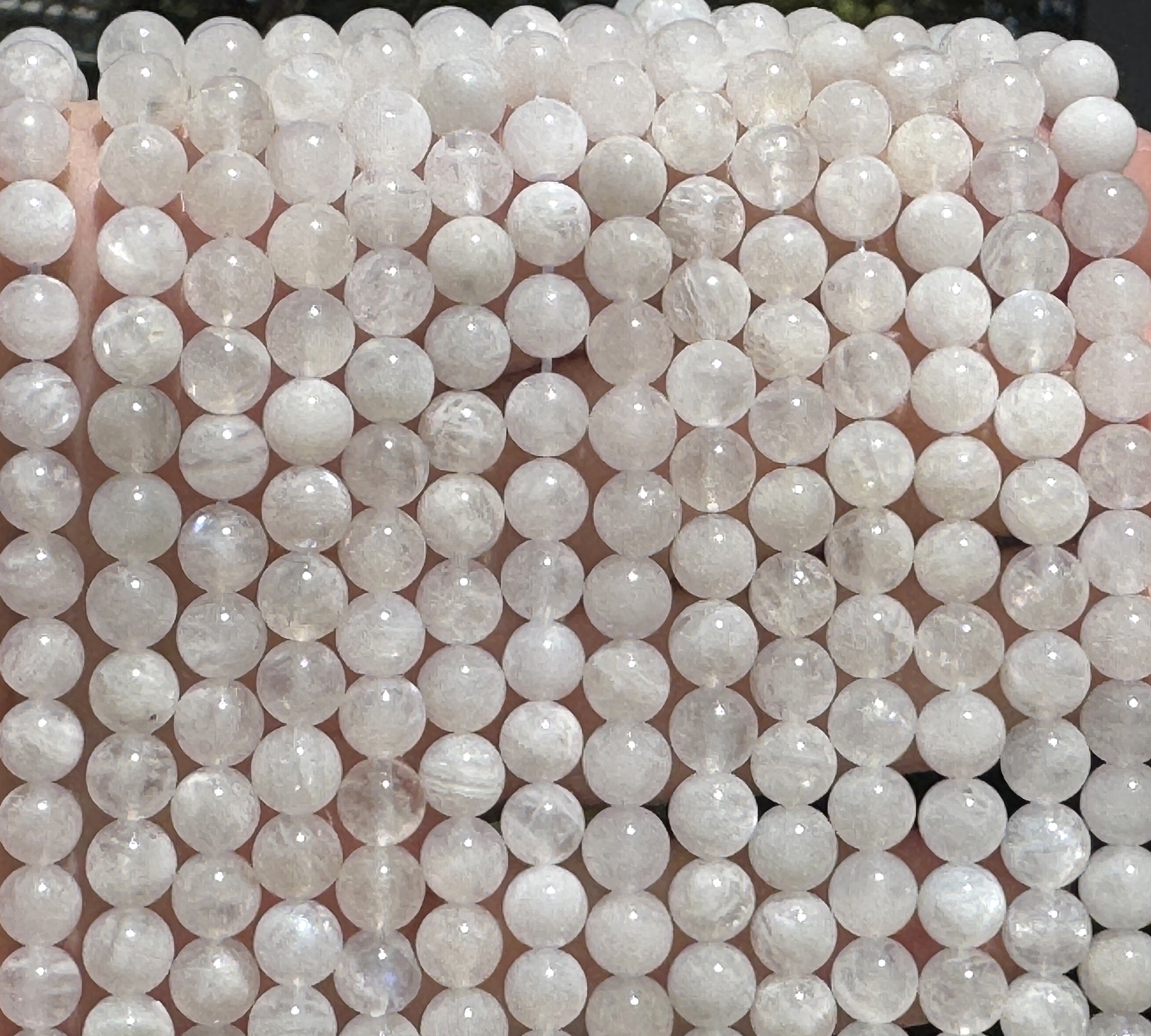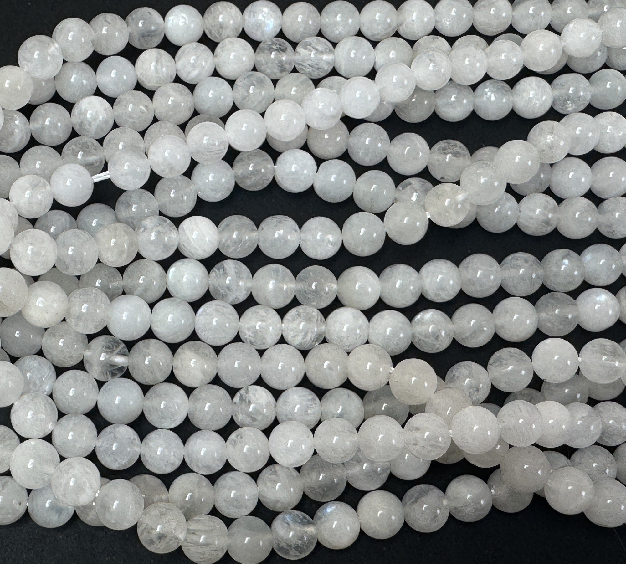 White Rainbow Moonstone 6mm round natural gemstone beads 15.5" strand