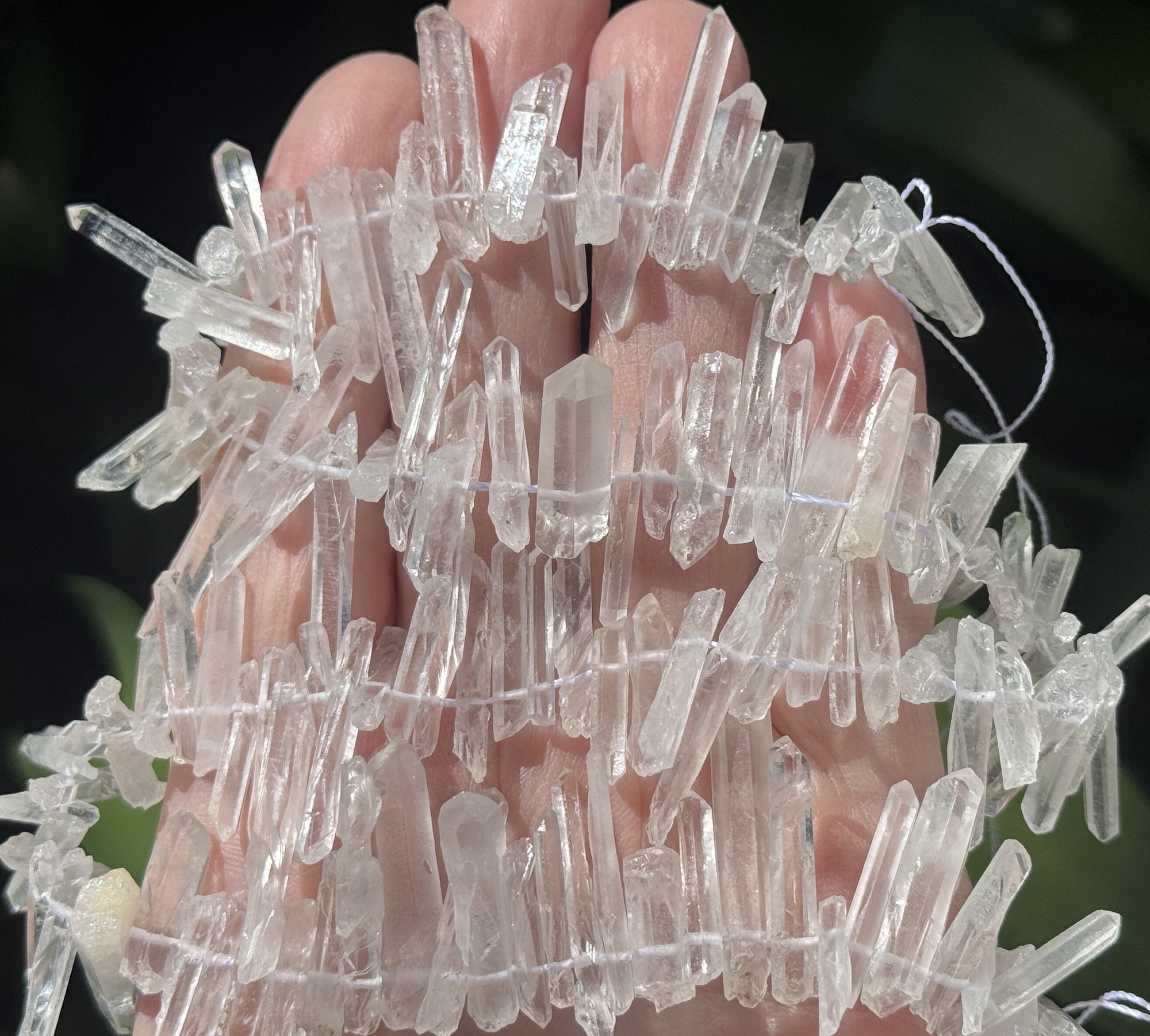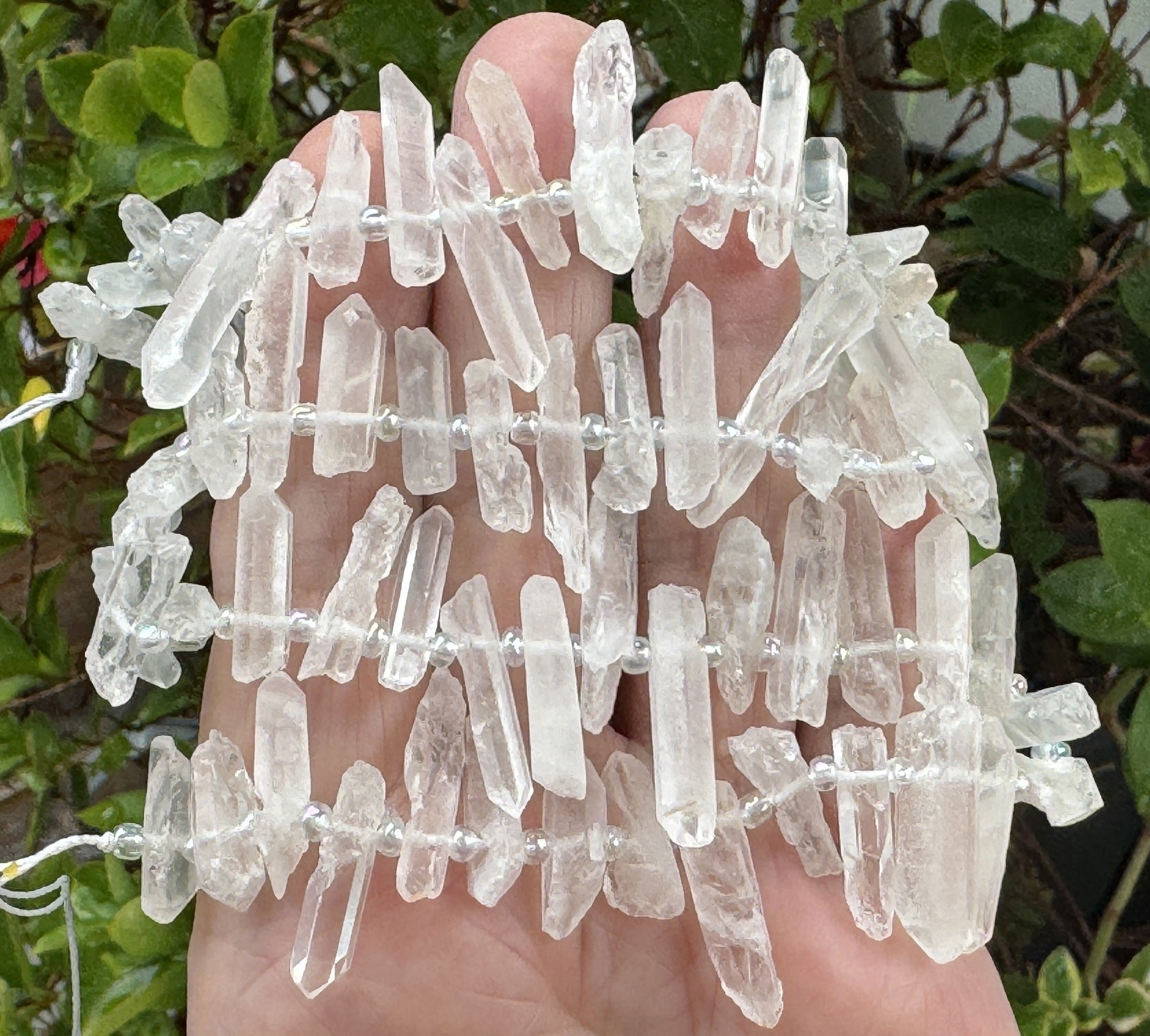 Clear Quartz raw top drilled points natural rock crystal beads 16" strand