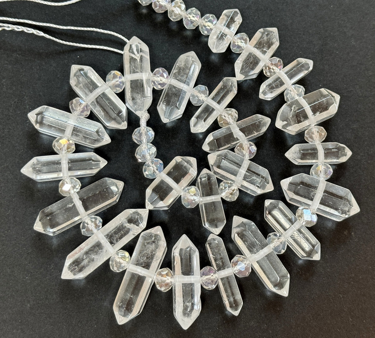 Tibetan Quartz Points double terminated center drilled natural crystal quartz beads 15.5" strand