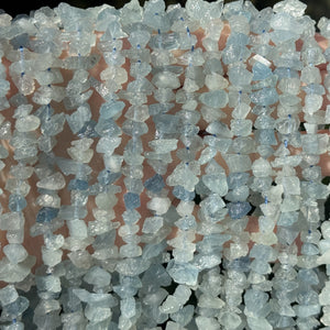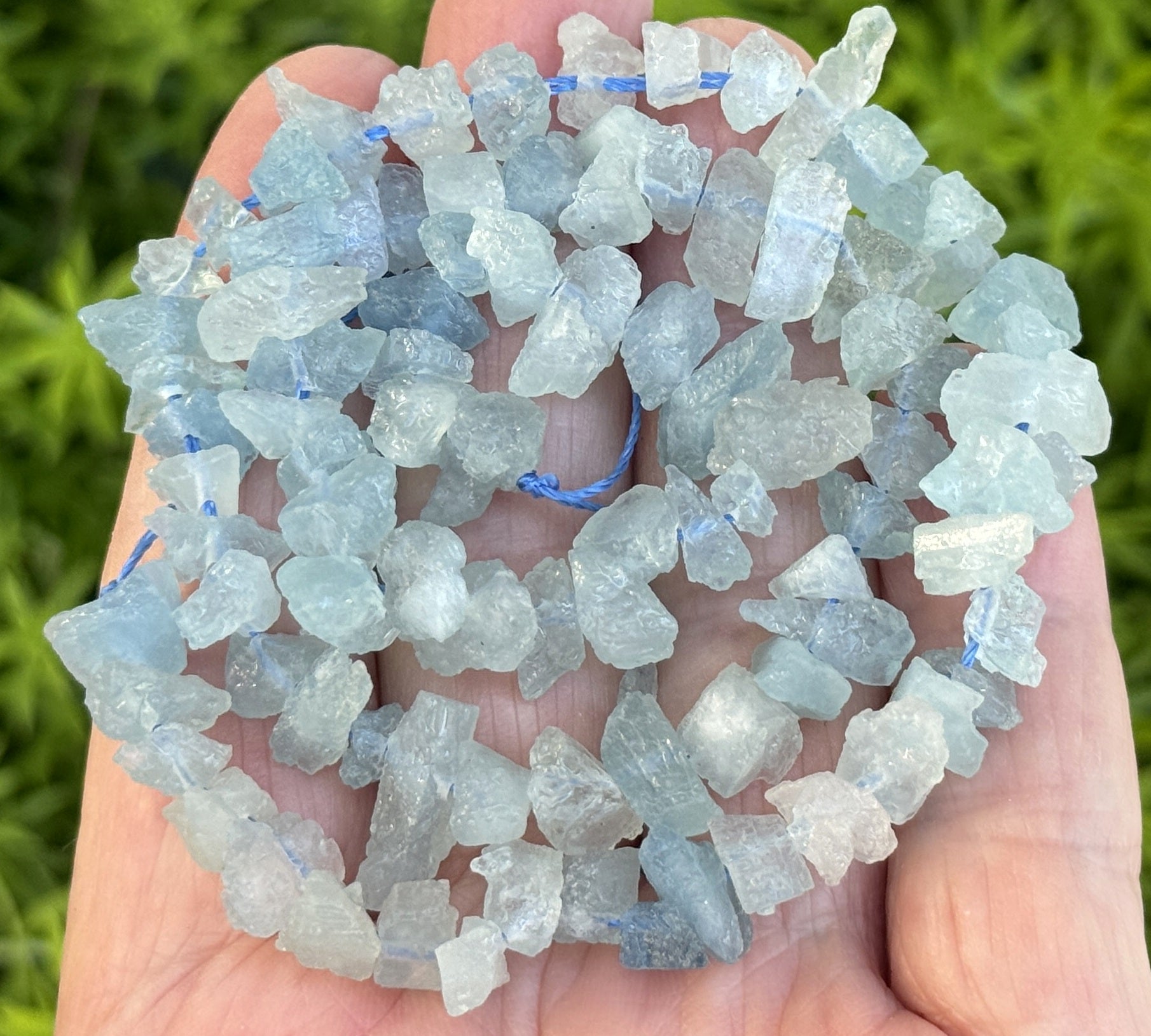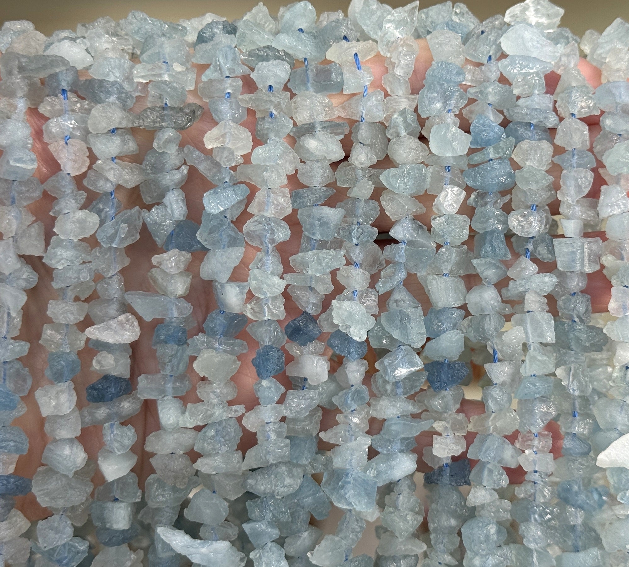 Aquamarine raw rough chip beads center drilled natural gemstone chips 16" strand
