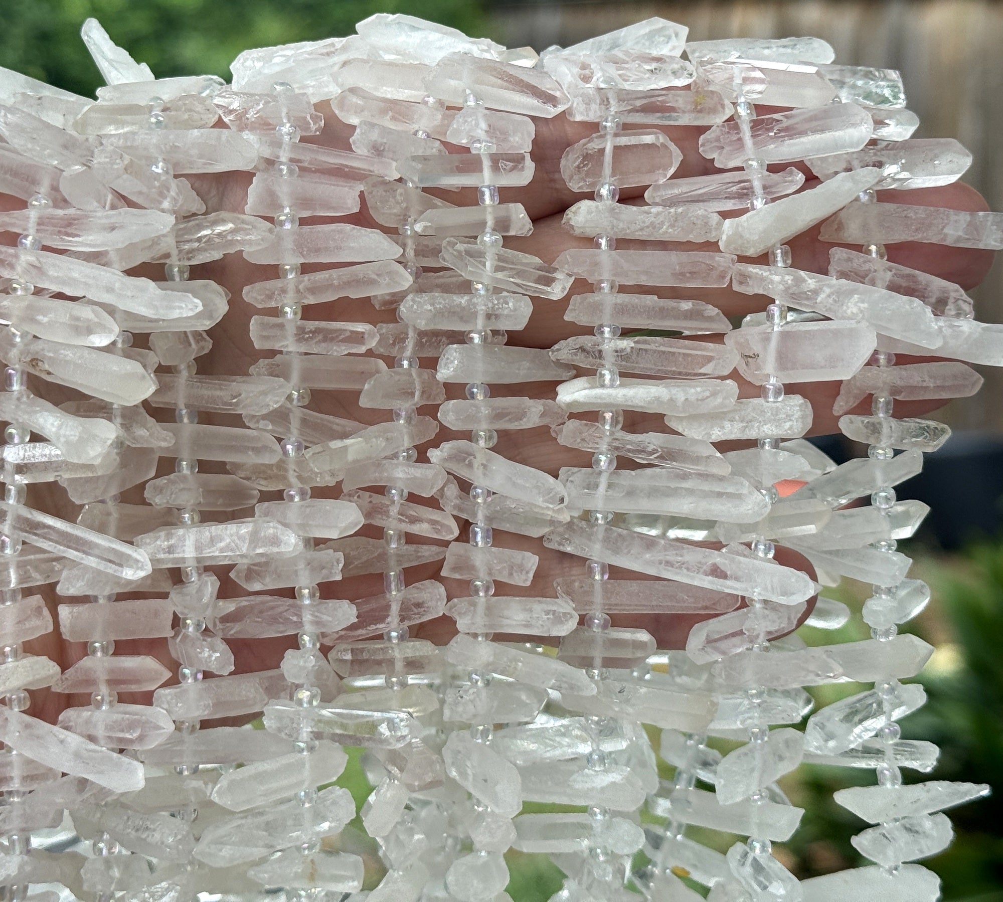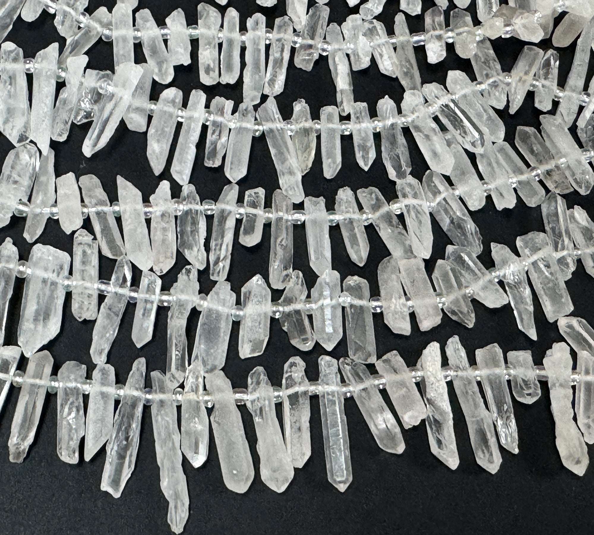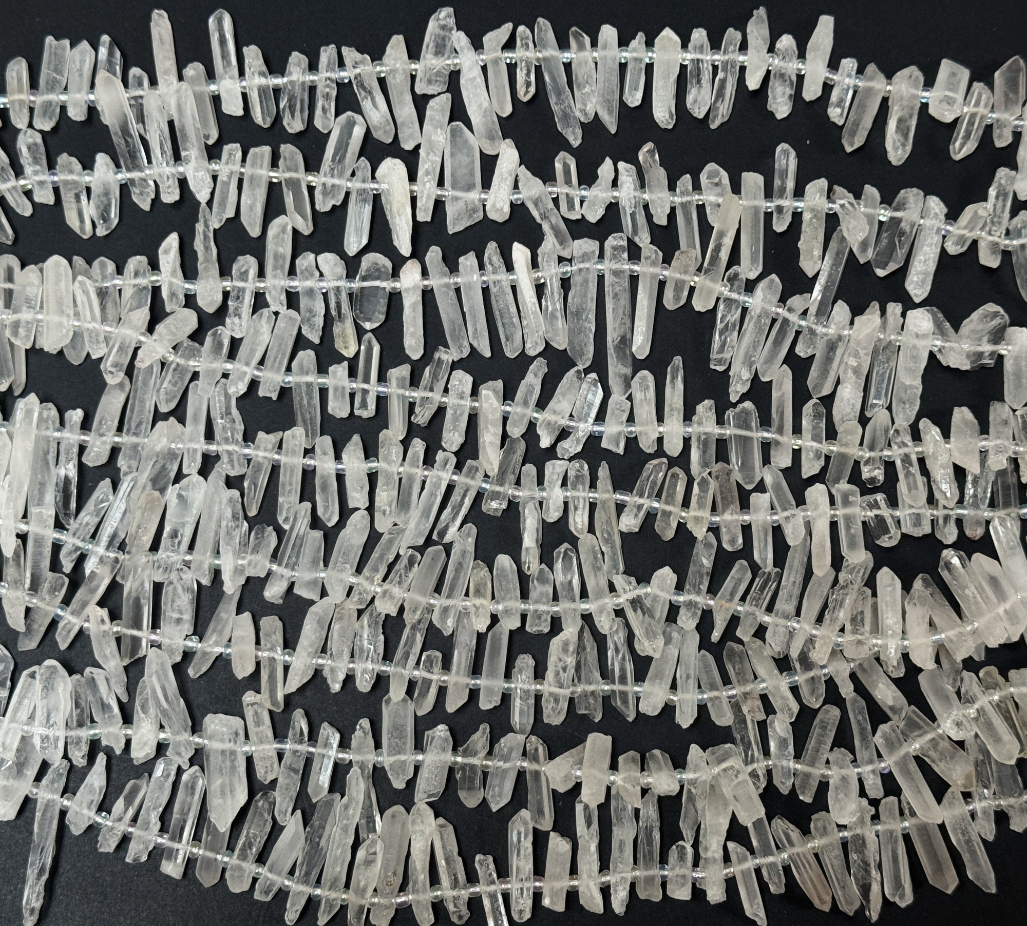 White Quartz raw top drilled points natural rock crystal beads 16" strand