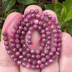 Ruby 4mm faceted round natural gemstone beads 15.5" strand