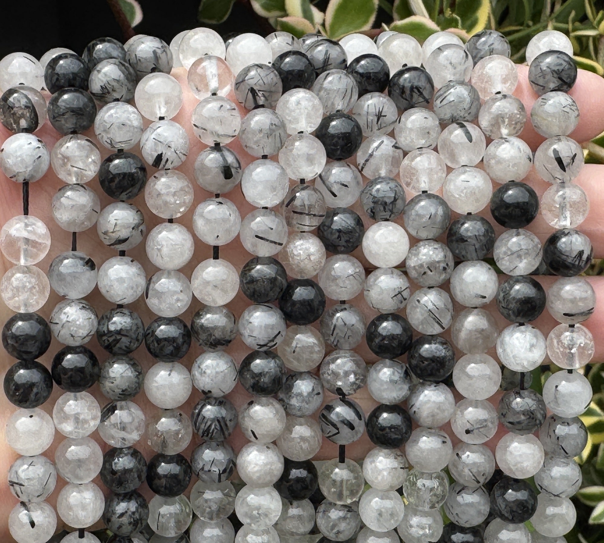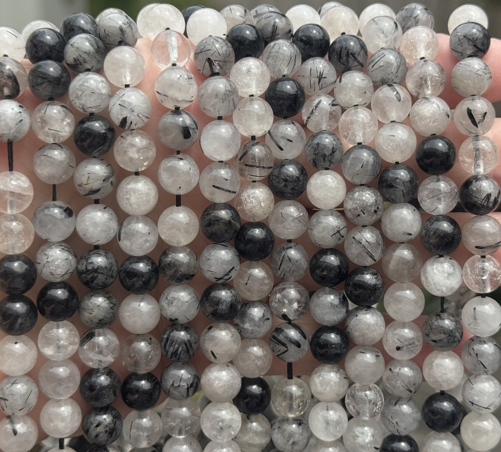 Tourmalinated Quartz 8mm round natural gemstone beads 15" strand