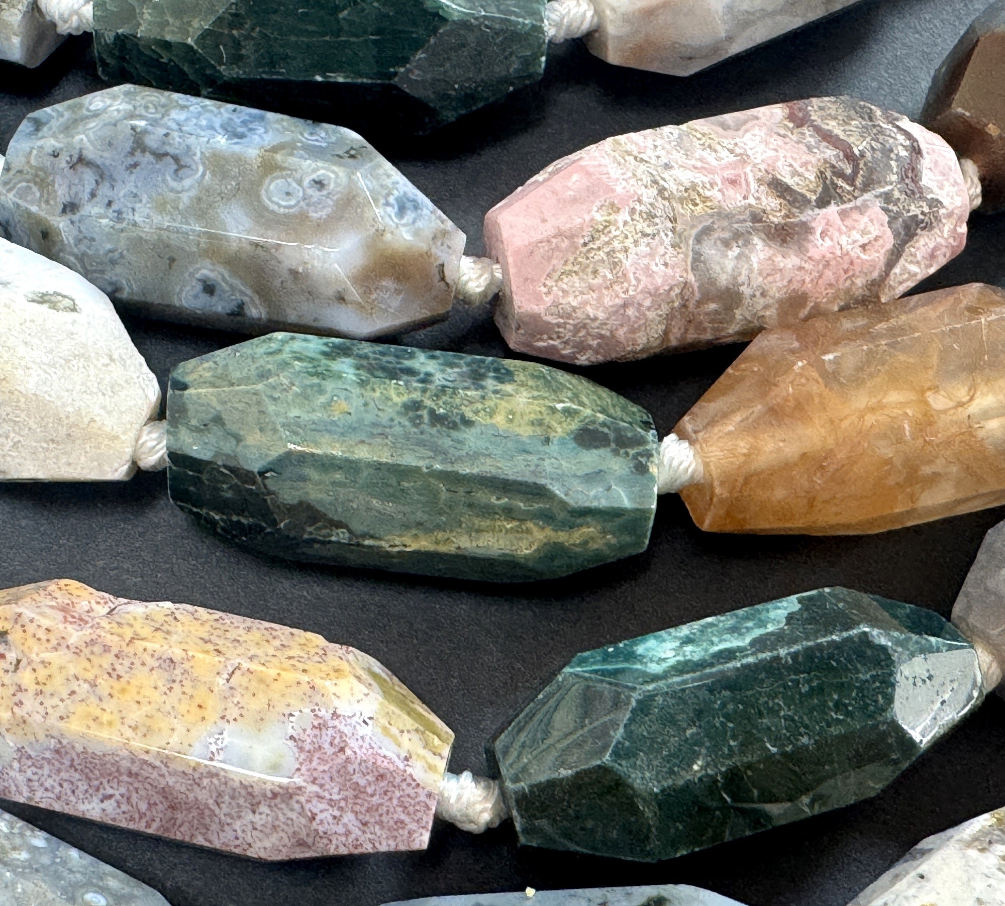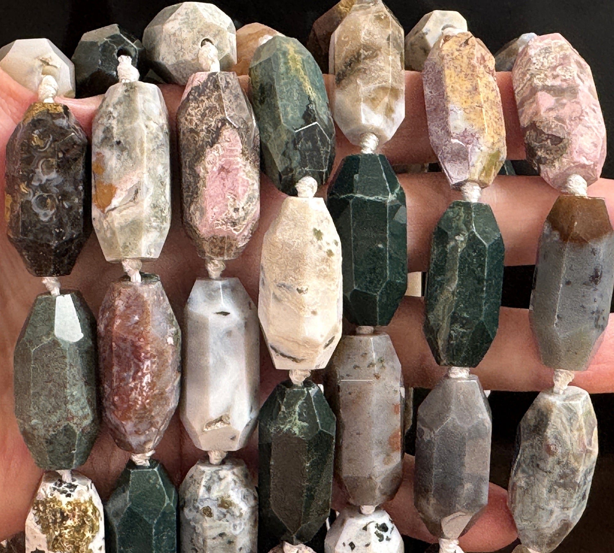 Ocean Jasper 30x14mm faceted barrel gemstone beads 40cm strand