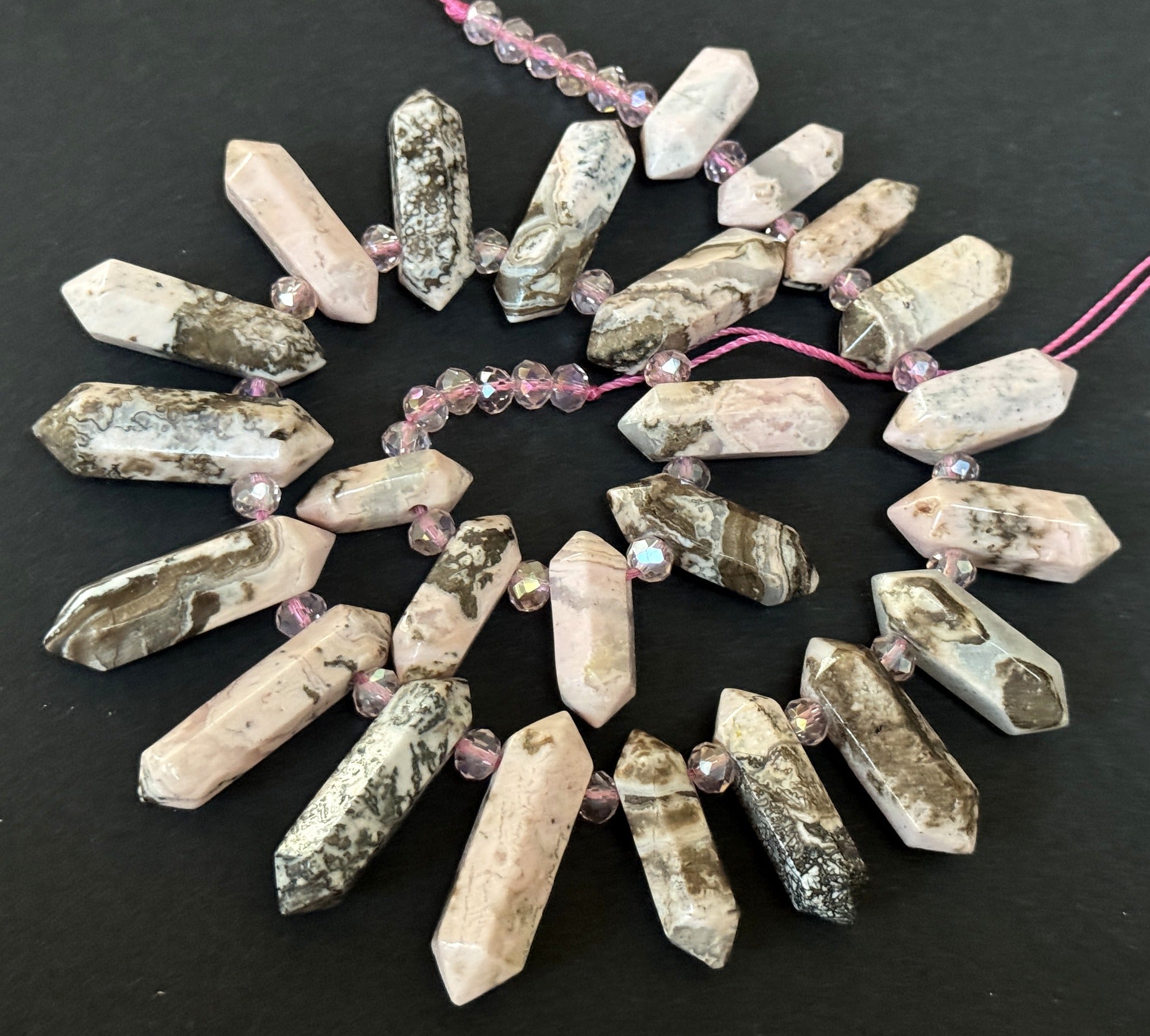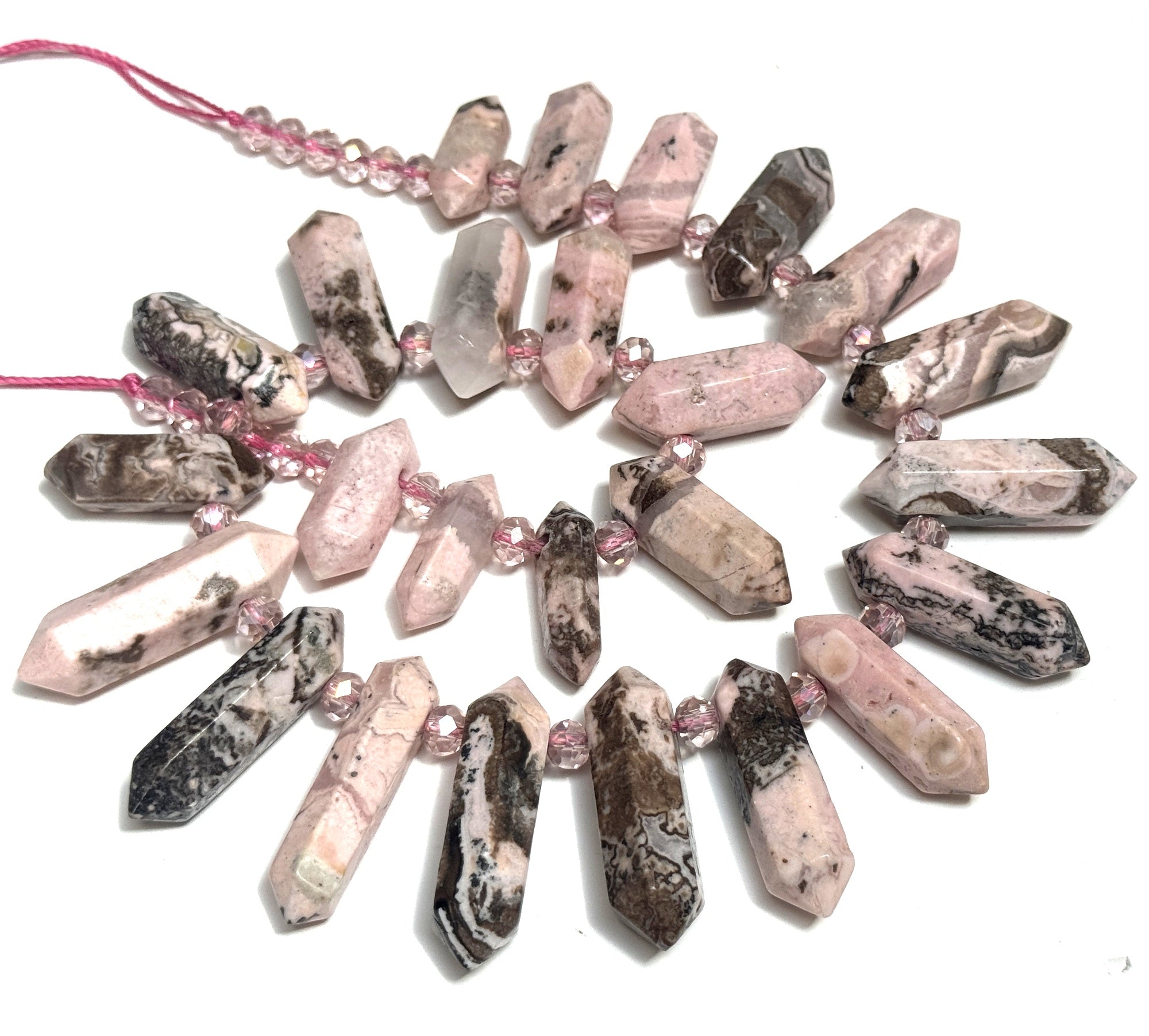 Rhodonite Points 25 double terminated top drilled gemstone beads
